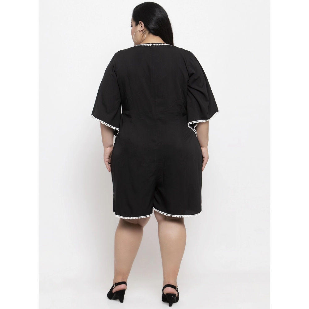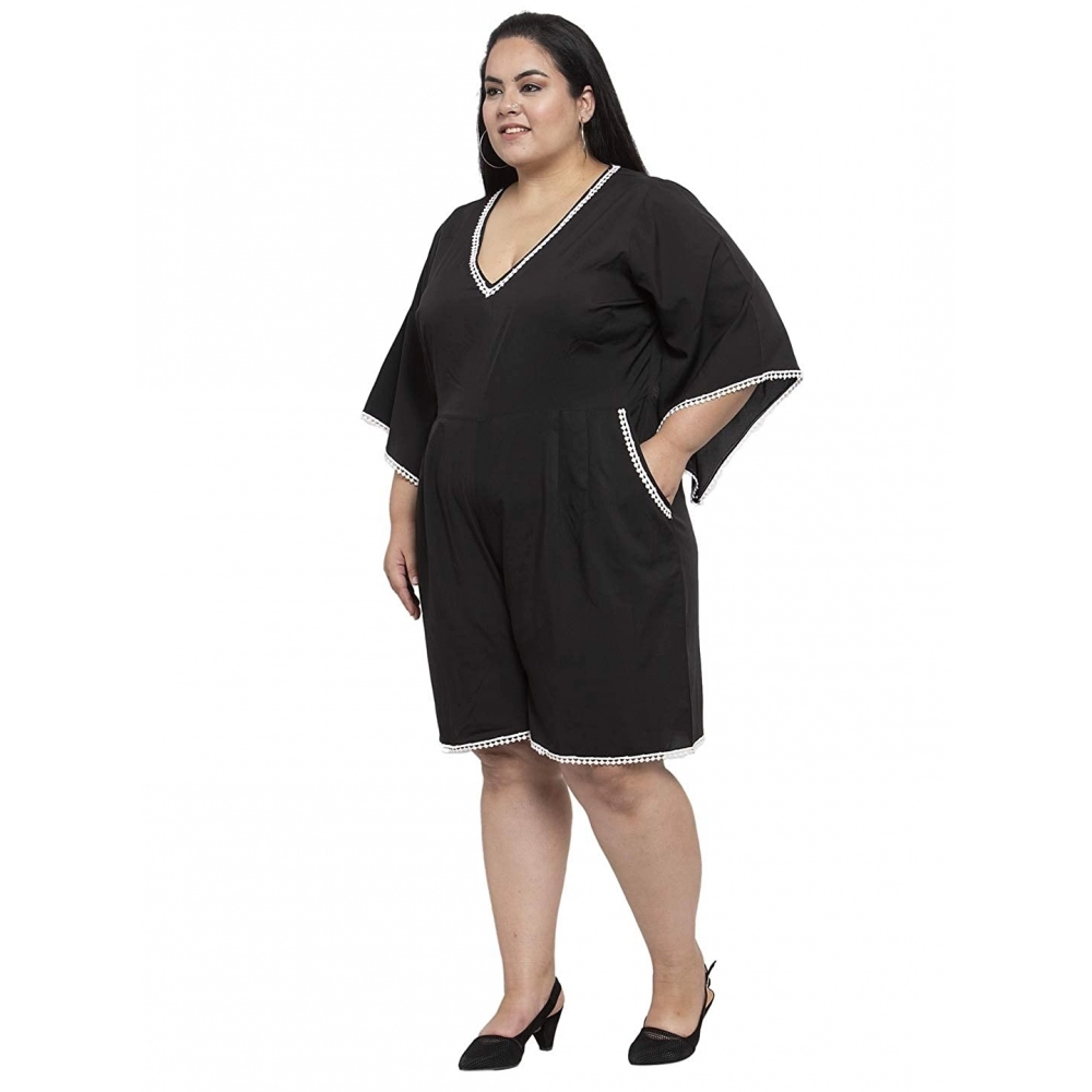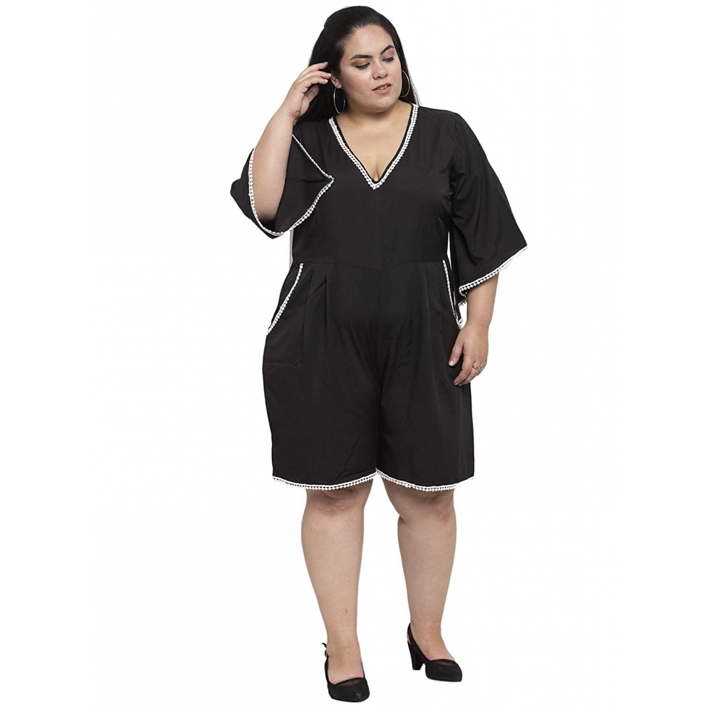 Women’s Crepe Solid Knee Length Fit and Flare Dress (Black)