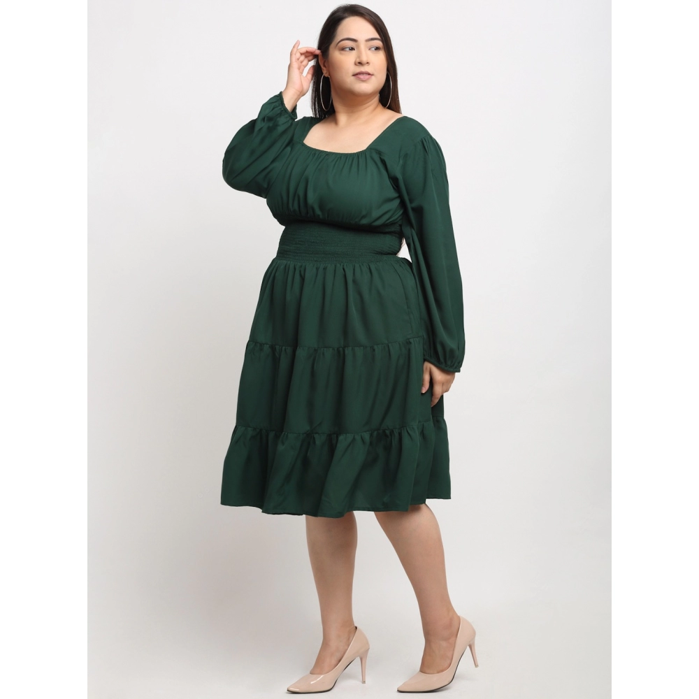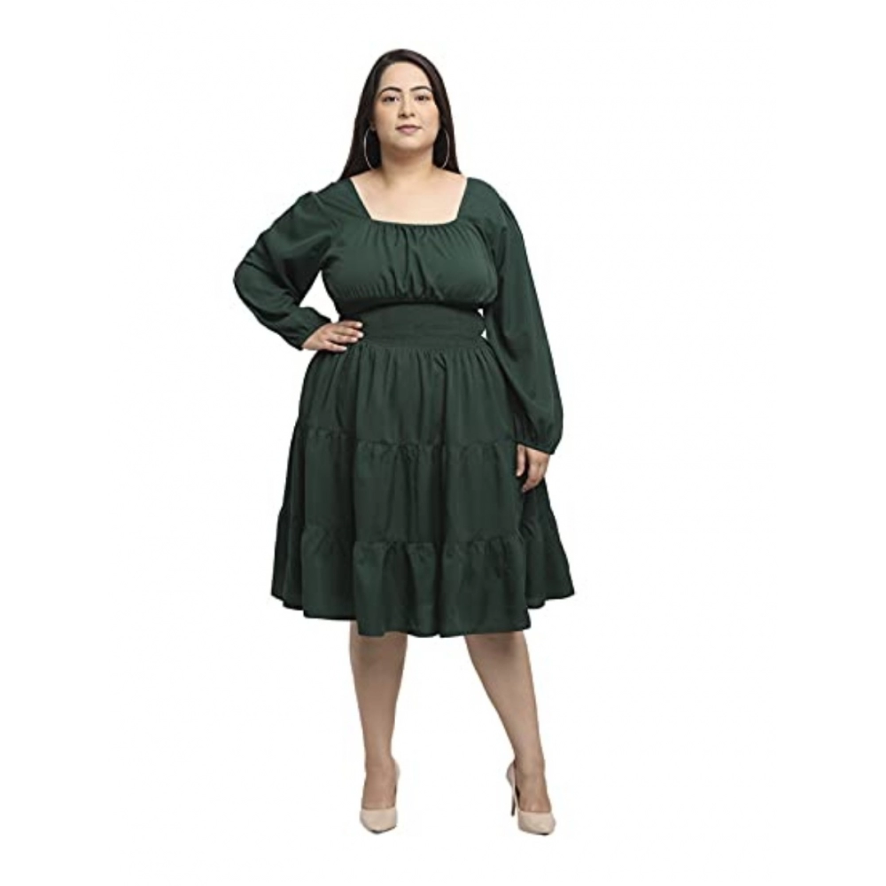 Women’s Crepe Solid Knee Length Fit and Flare Dress (Bottle Green)