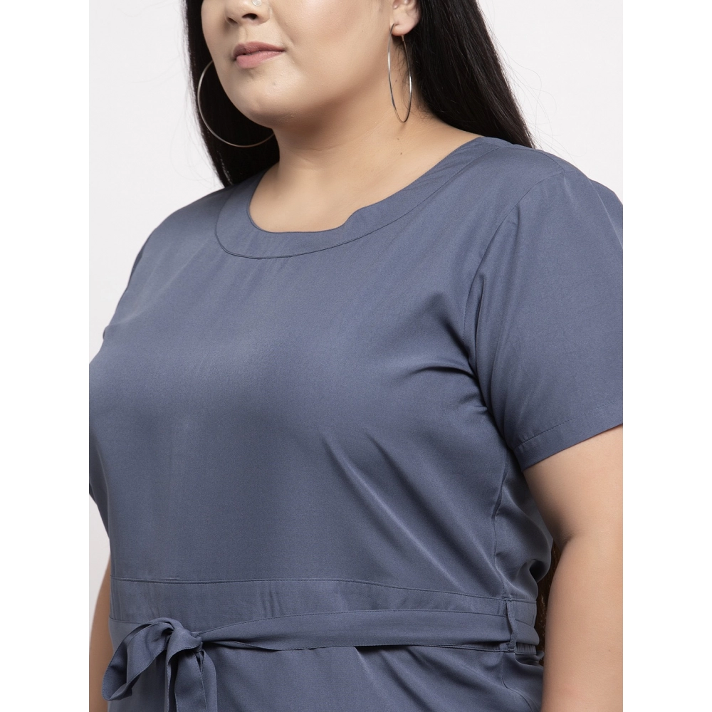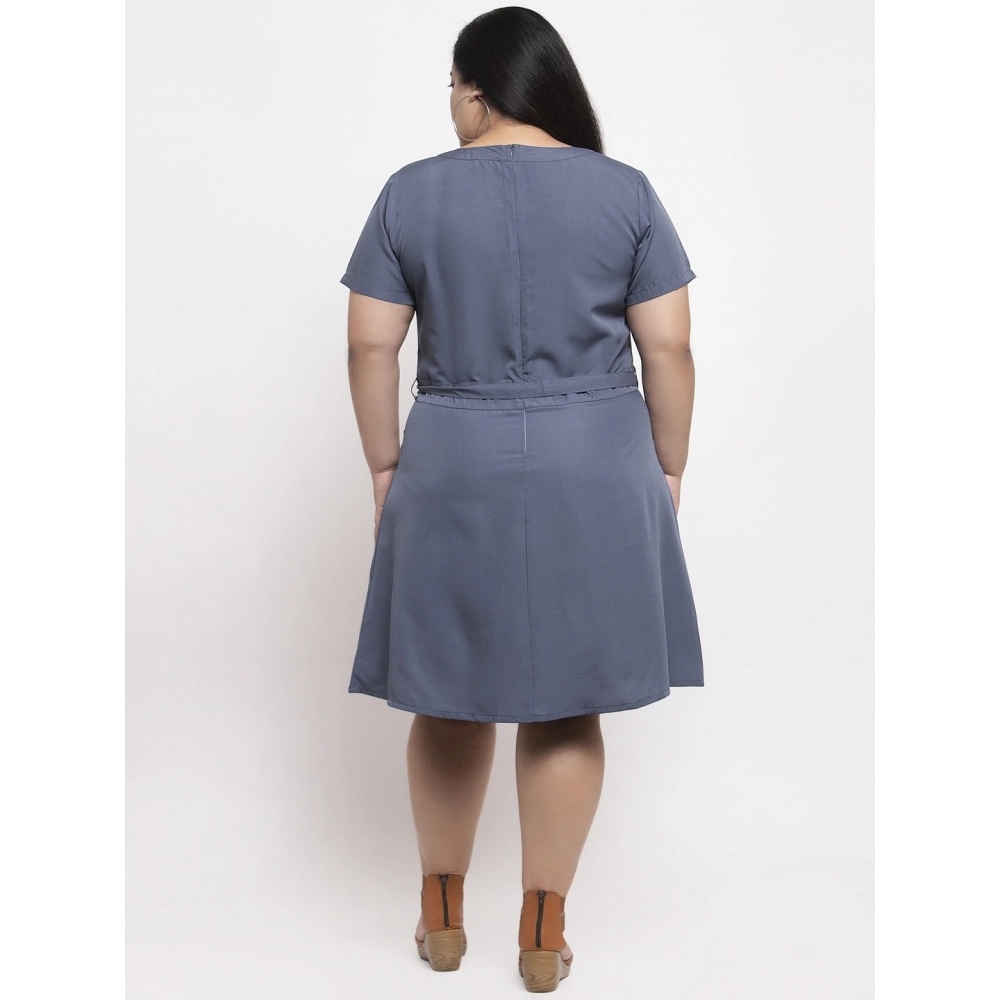 Women’s Crepe Solid Knee Length Fit and Flare Dress (Grey)