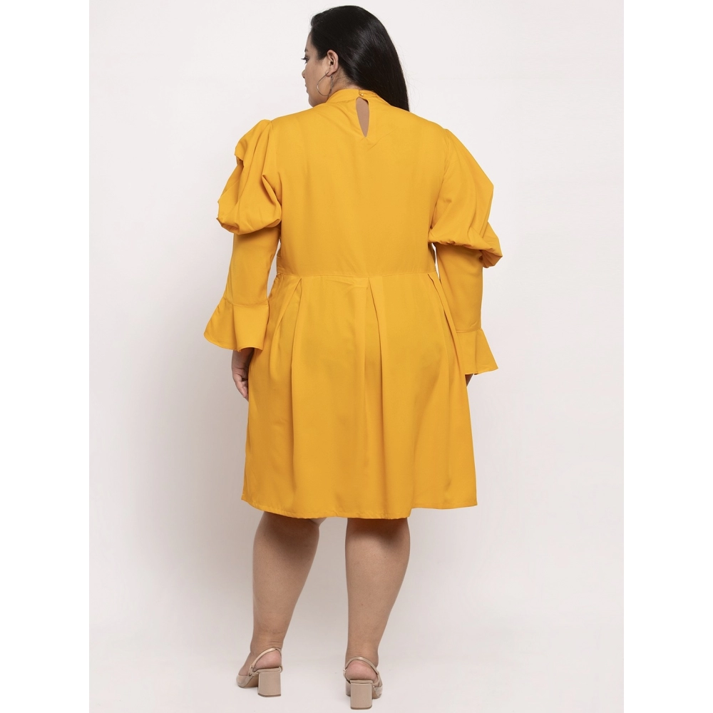Women’s Crepe Solid Knee Length Fit and Flare Dress (Musted)
