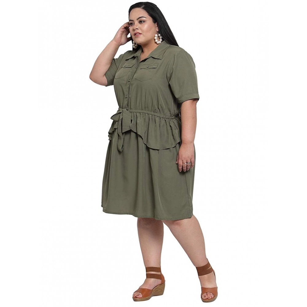 Women’s Crepe Solid Knee Length Fit and Flare Dress (Olive Green)