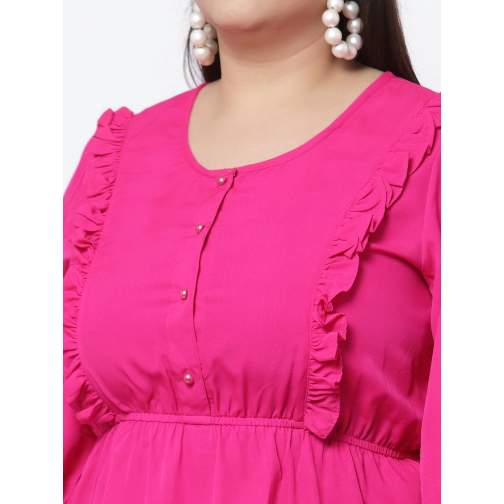 Women’s Crepe Solid Knee Length Fit and Flare Dress (Pink)