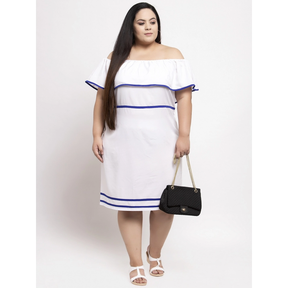 Women’s Crepe Solid Knee Length Fit and Flare Dress (White)