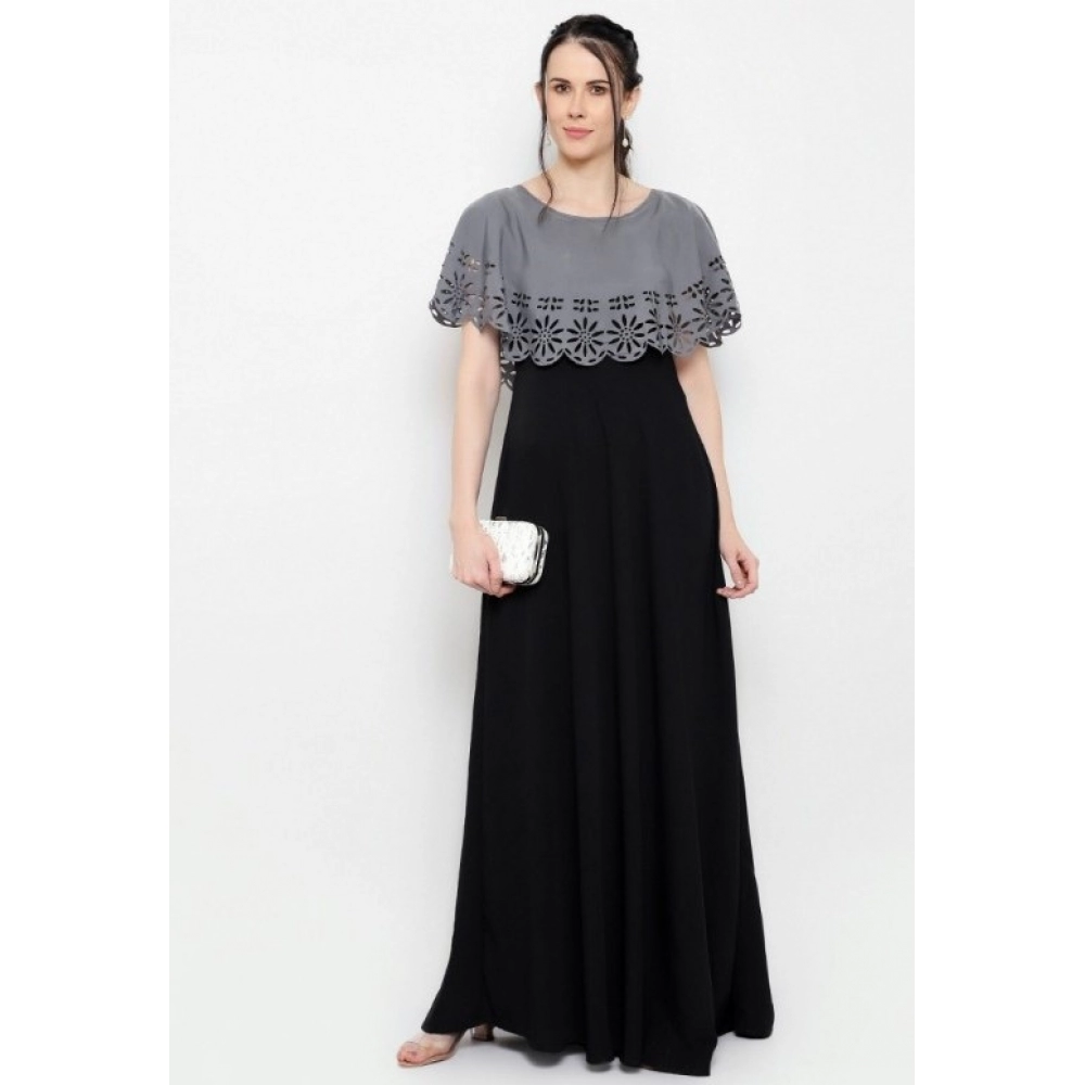 Women’s Crepe Solid Sleeveless Full Length Gown