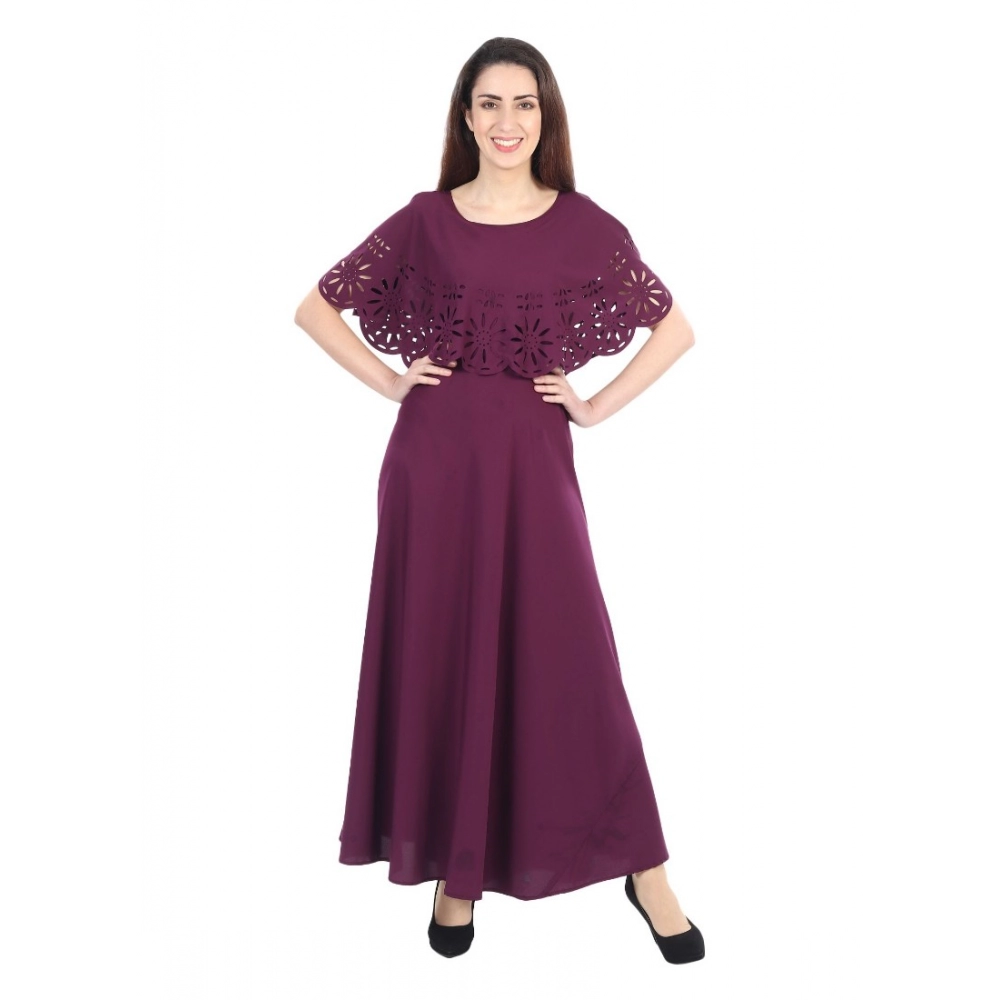 Women’s Crepe Solid Sleeveless Full Length Gown(Maroon)