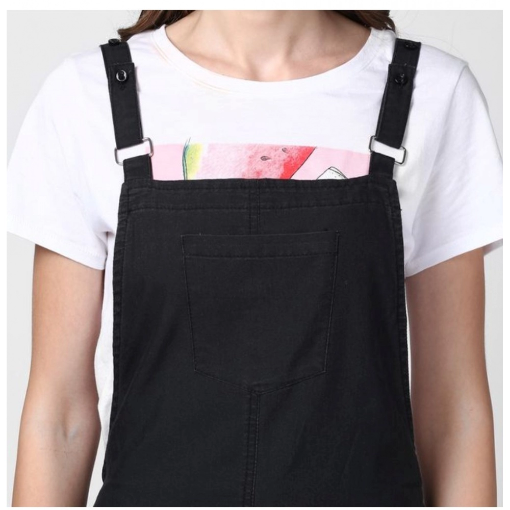 Women’s Denim Solid Shoulder Straps Above Knee Dungaree