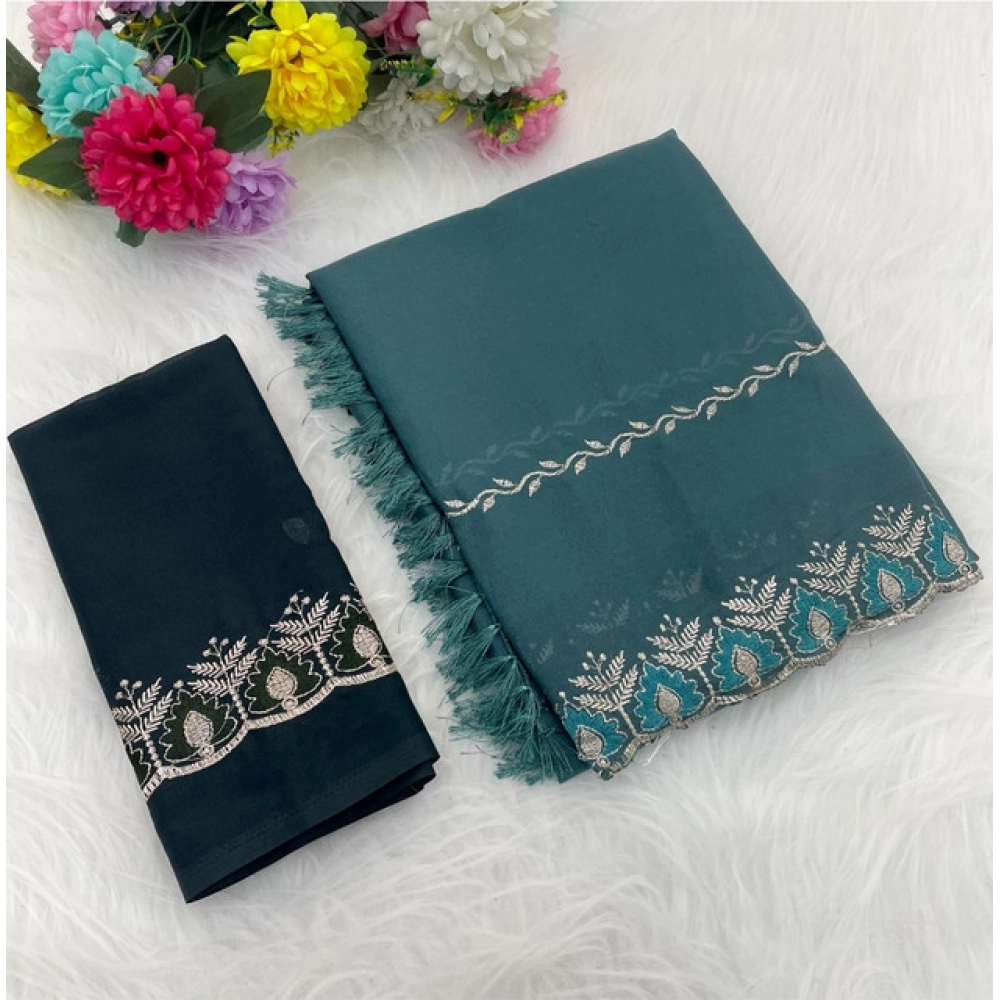 Be the first to review “Women’s Georgette Embroidered Saree With Unstitched Blouse 5.5Mtr (Blue)”