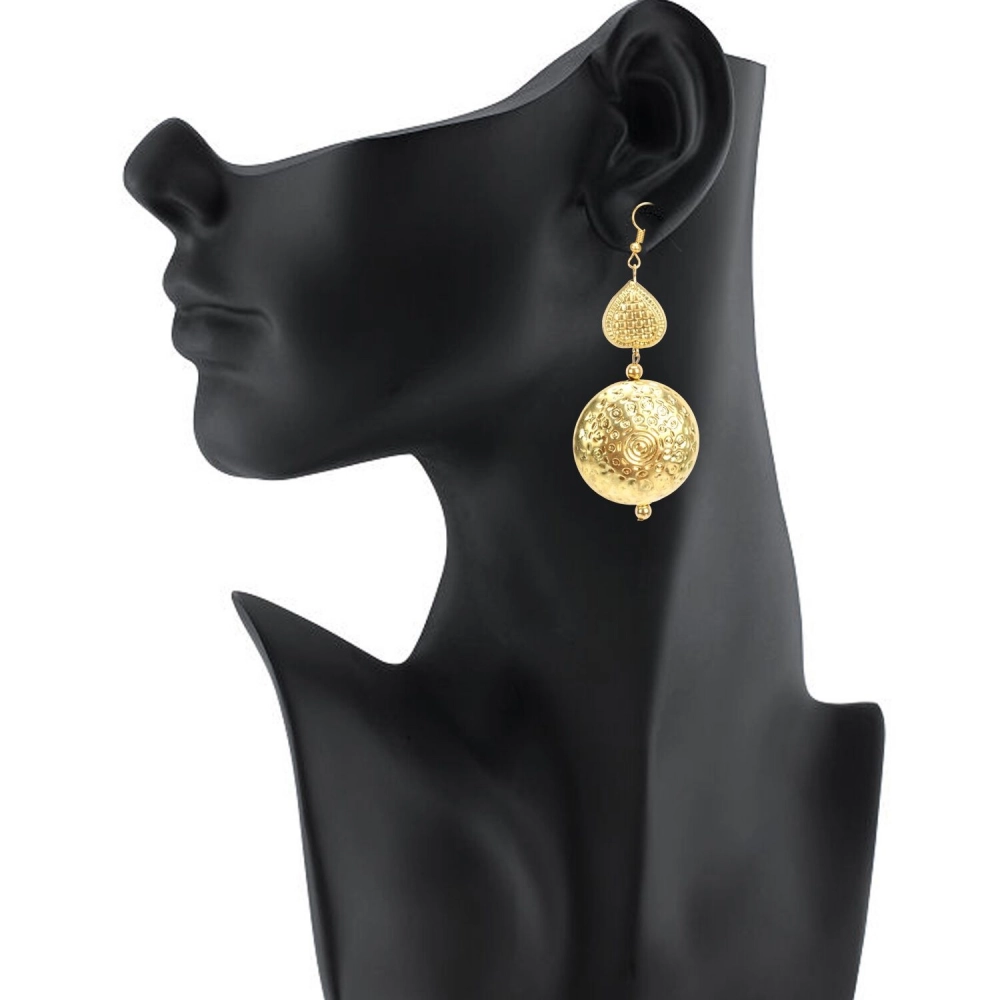Women’s Gold Plated Hook Dangler Hanging Earrings-Golden,