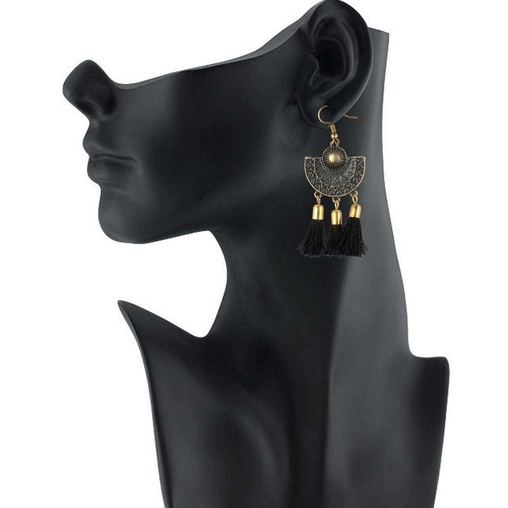 Women’s Gold Plated Tassel Fashion Earrings-Black,