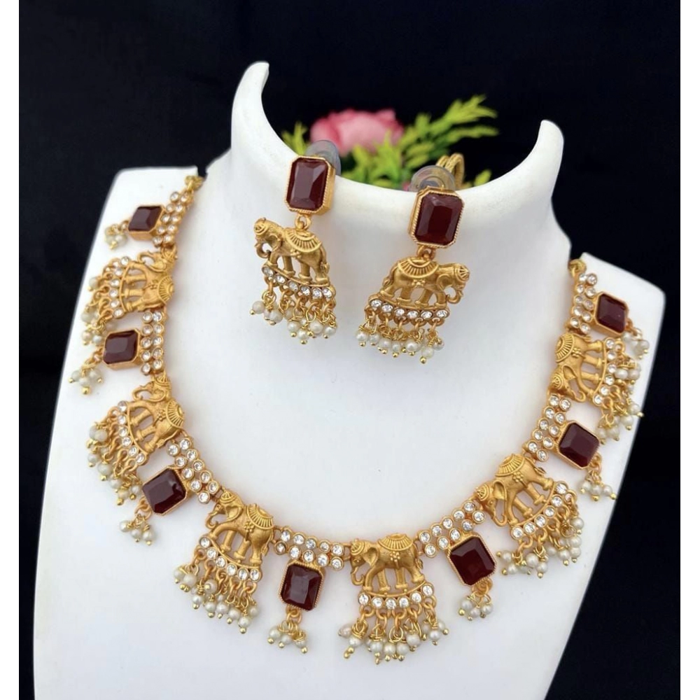 Women’s Gold Plated Temple Necklace and Earrings Set (Red, Free Size)