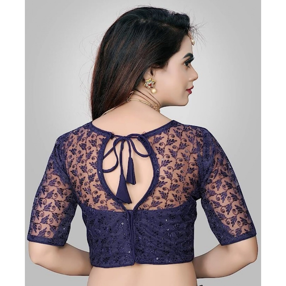 Women’s Half Sleeve Net Readymade Blouse (Navy Blue, Free Size: Up To 34 Inch)