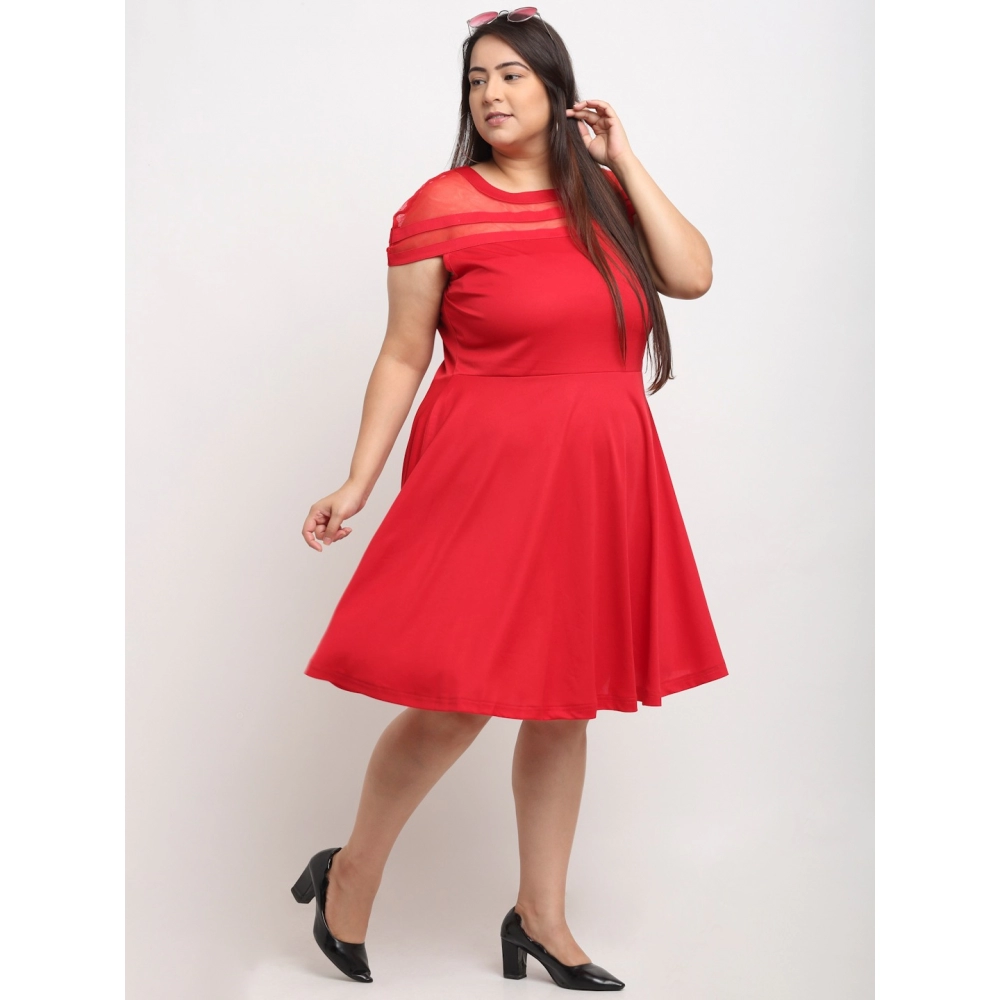 Women’s Hojri Solid Knee Length Fit and Flare Dress (Red)