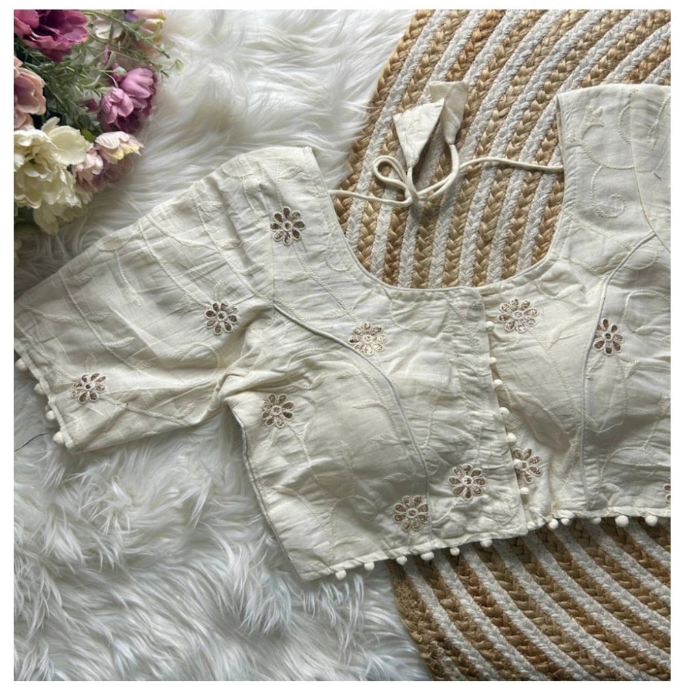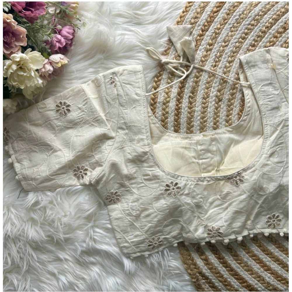 Women’s Khadi Cotton Embroidery Round Neck Short Sleeve Readymade Blouse