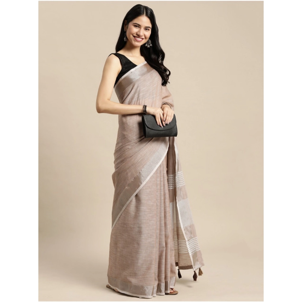 Women’s Linen Cotton Printed Saree With Unstitched Blouse 5.5Mtr