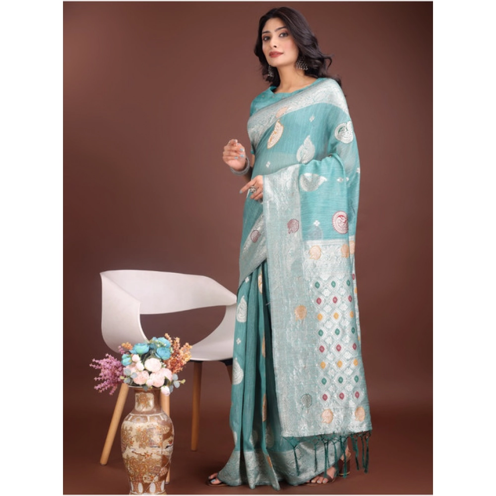 Women’s Linen Cotton Printed Saree With Unstitched Blouse 5.5Mtr