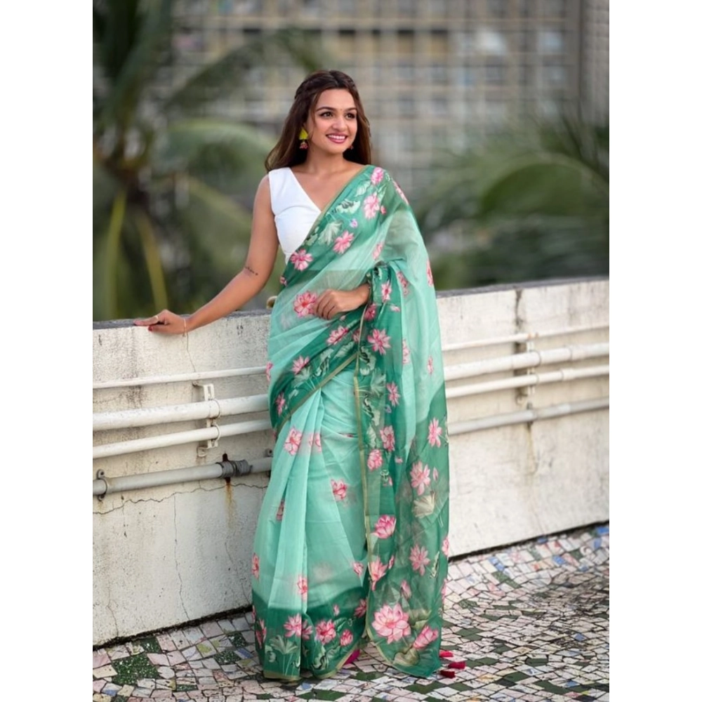 Women’s Linen Printed Saree With Unstitched Blouse 5.5Mtr