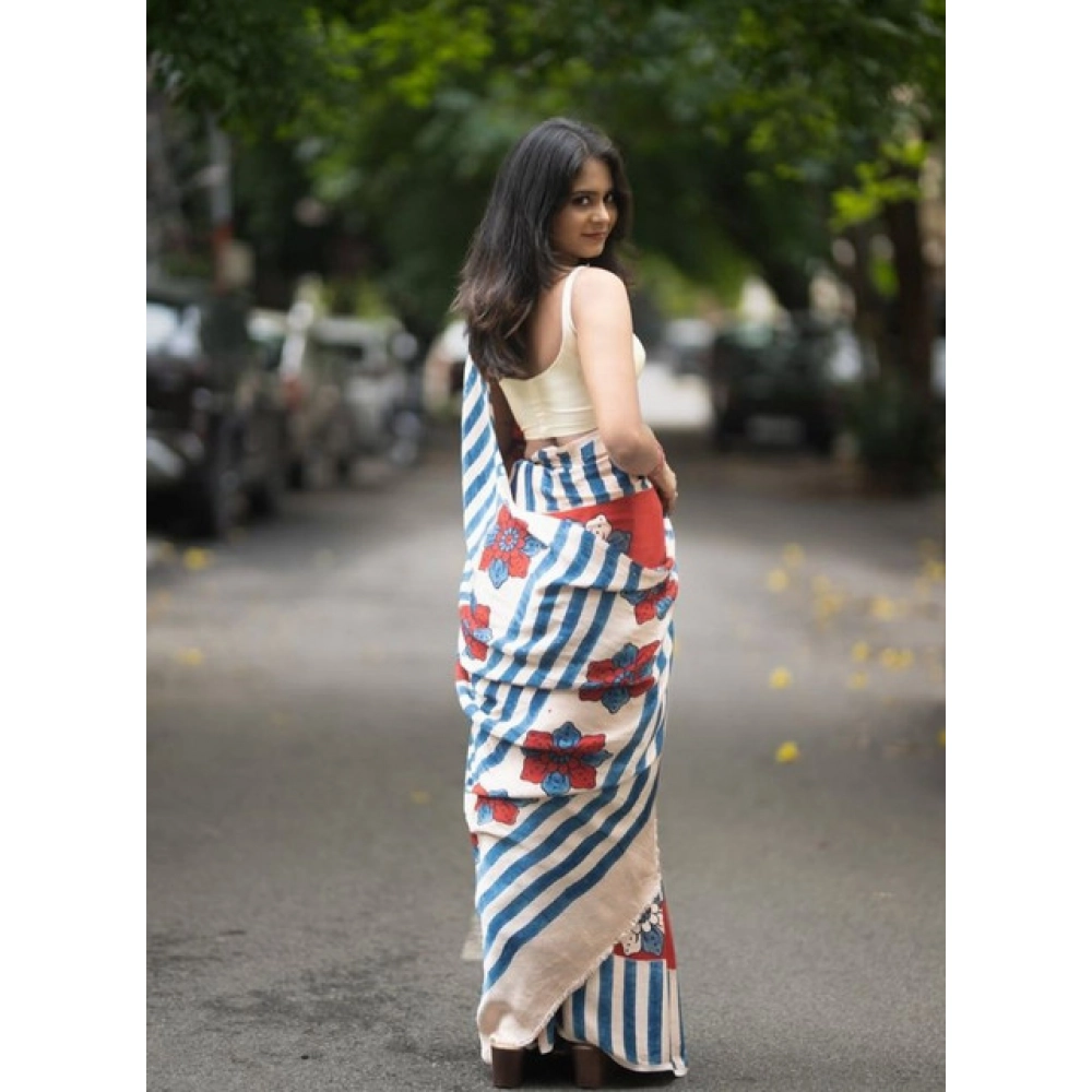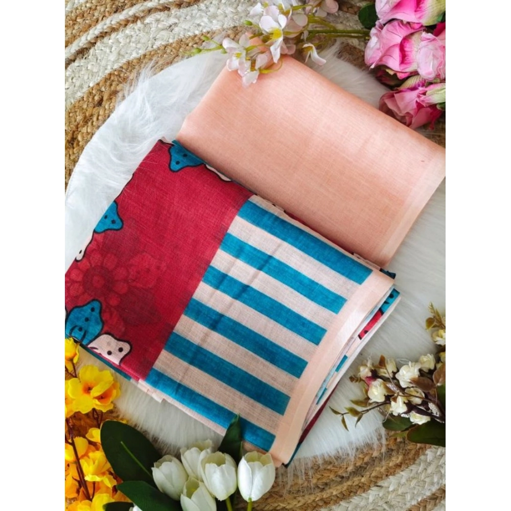 Women’s Linen Printed Saree With Unstitched Blouse 5.5Mtr