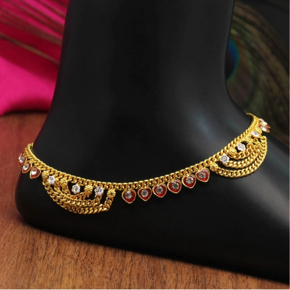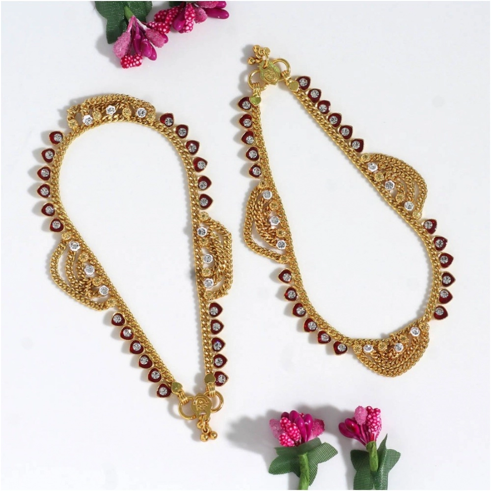 Women’s Maroon Color Rhinestone Anklets (Free Size: Upto 10")