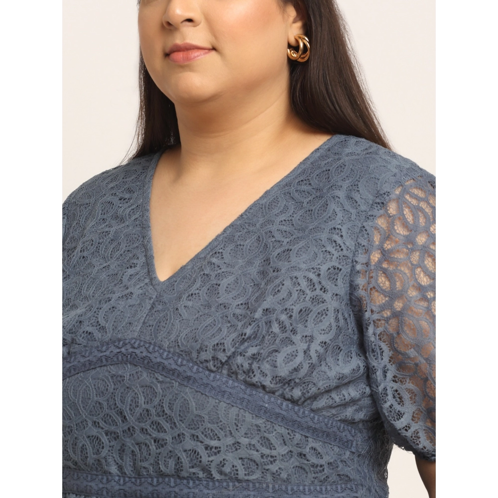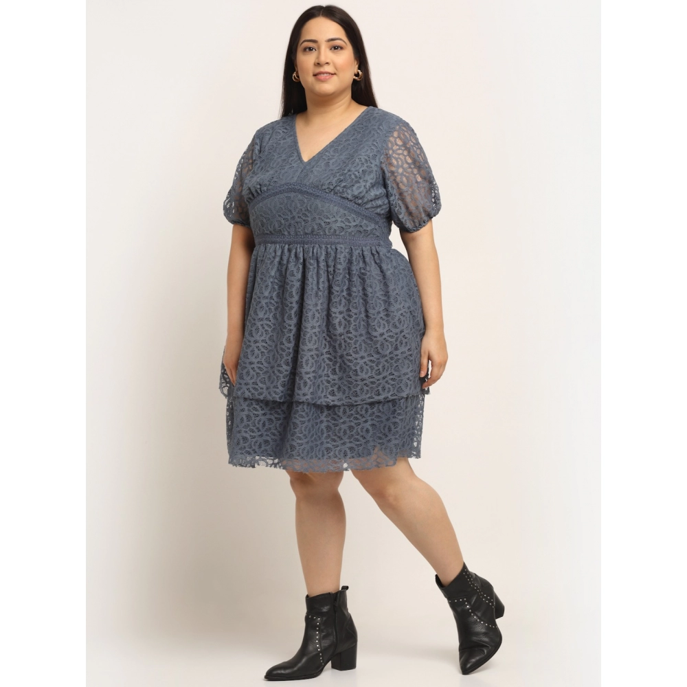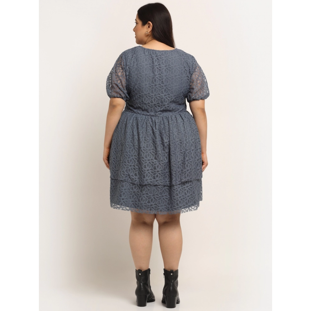 Women’s Net Solid Knee Length Fit and Flare Dress (Gery)