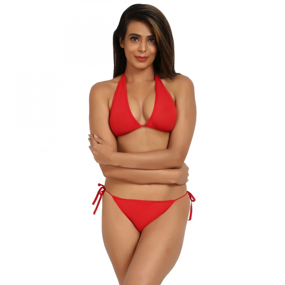 ?? This red bikini set features a non-padded wire-free bra which gives it natural look.