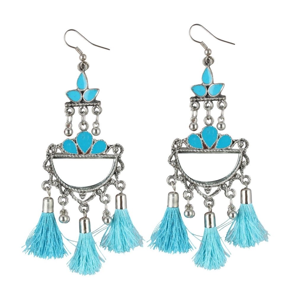 Women’s Oxidized Silver plated Firoji Tassels Earrings-silver, Blue,