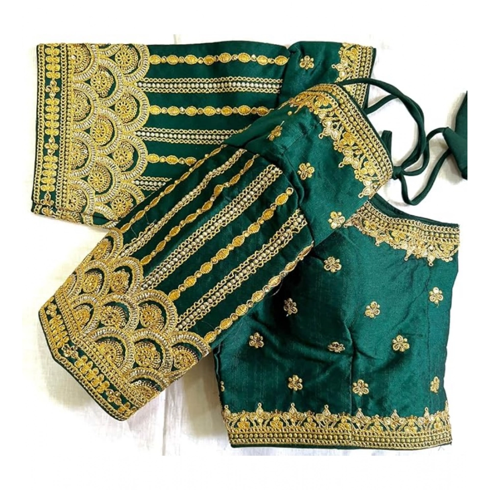 Women’s Phantom Silk Embroidery Round Neck Short Sleeve Readymade Blouse