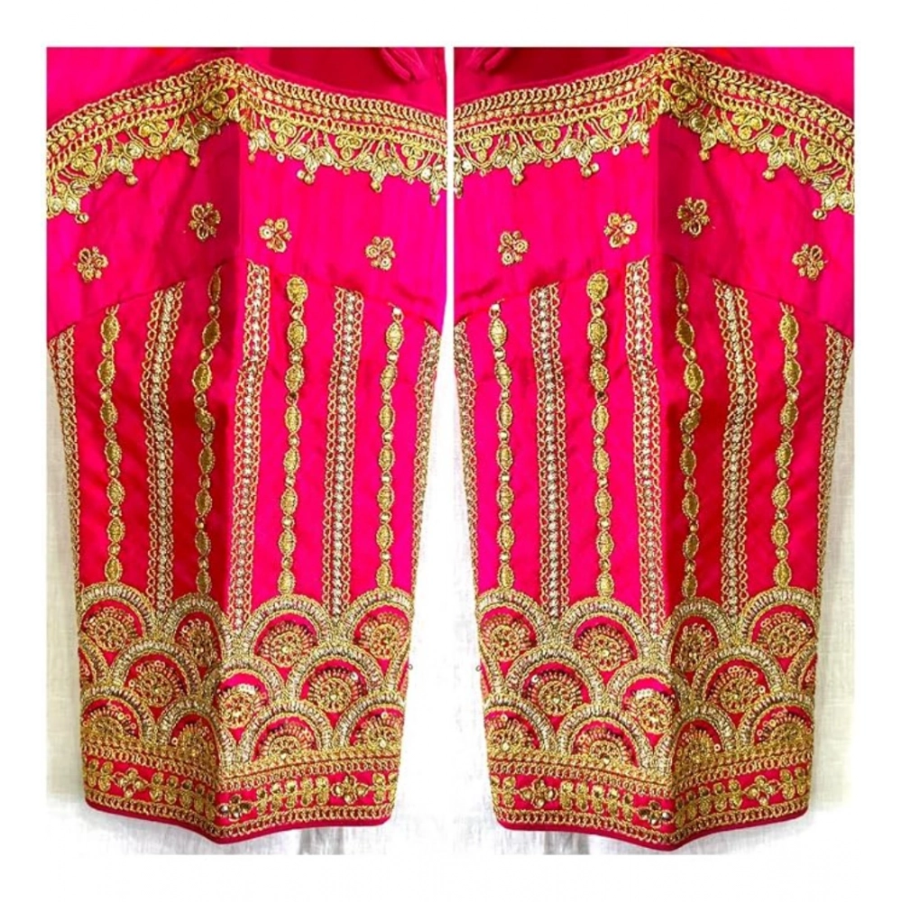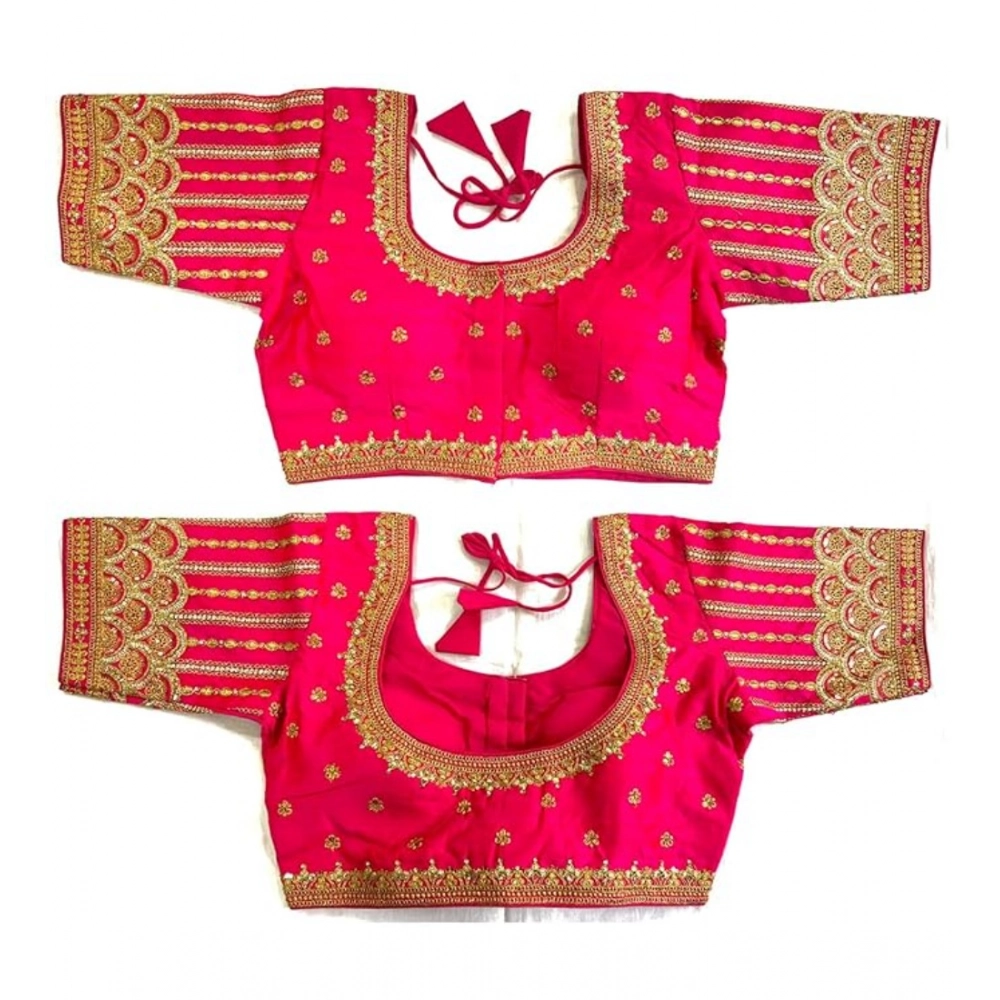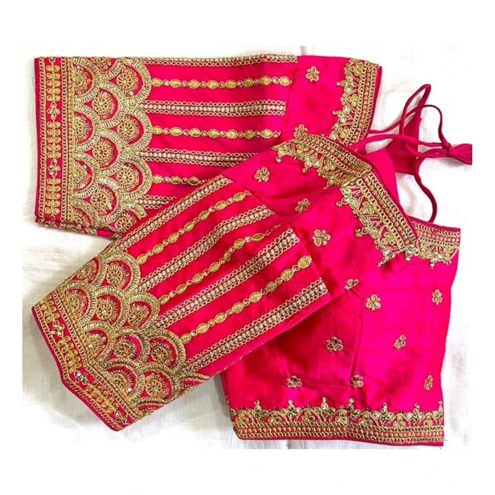 Women’s Phantom Silk Embroidery Round Neck Short Sleeve Readymade Blouse (Pink, Free Size)