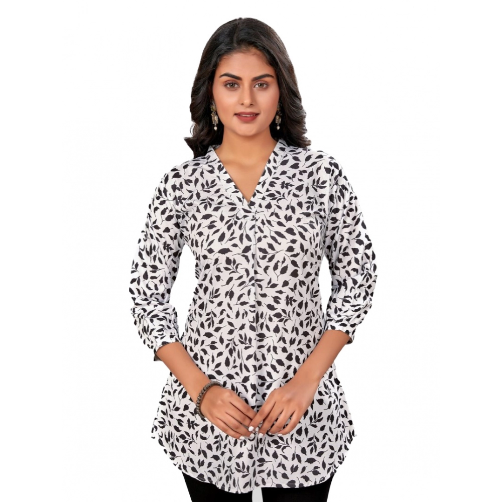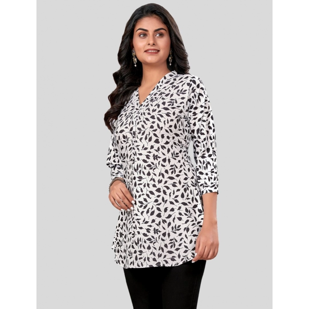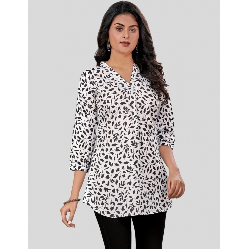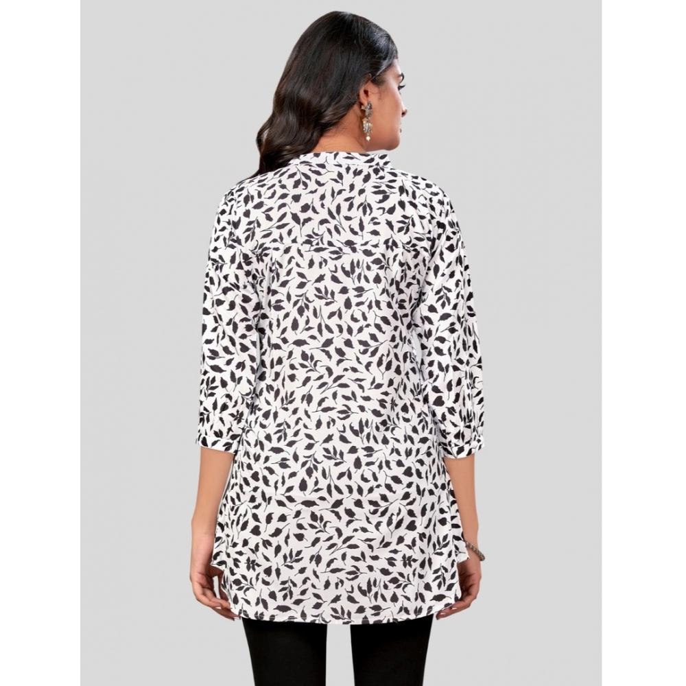 Women’s Poly Crepe Chinese Collar 3/4 Sleeves Short Top (Black-White)