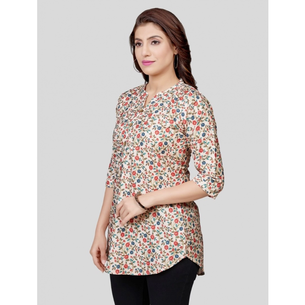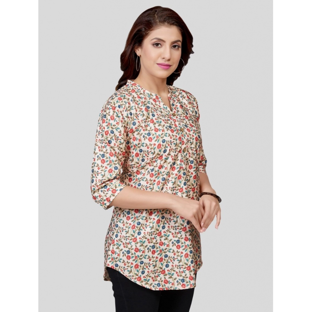 Women’s PolyCrepe Mandarin Collar 3/4 Sleeves Short Top