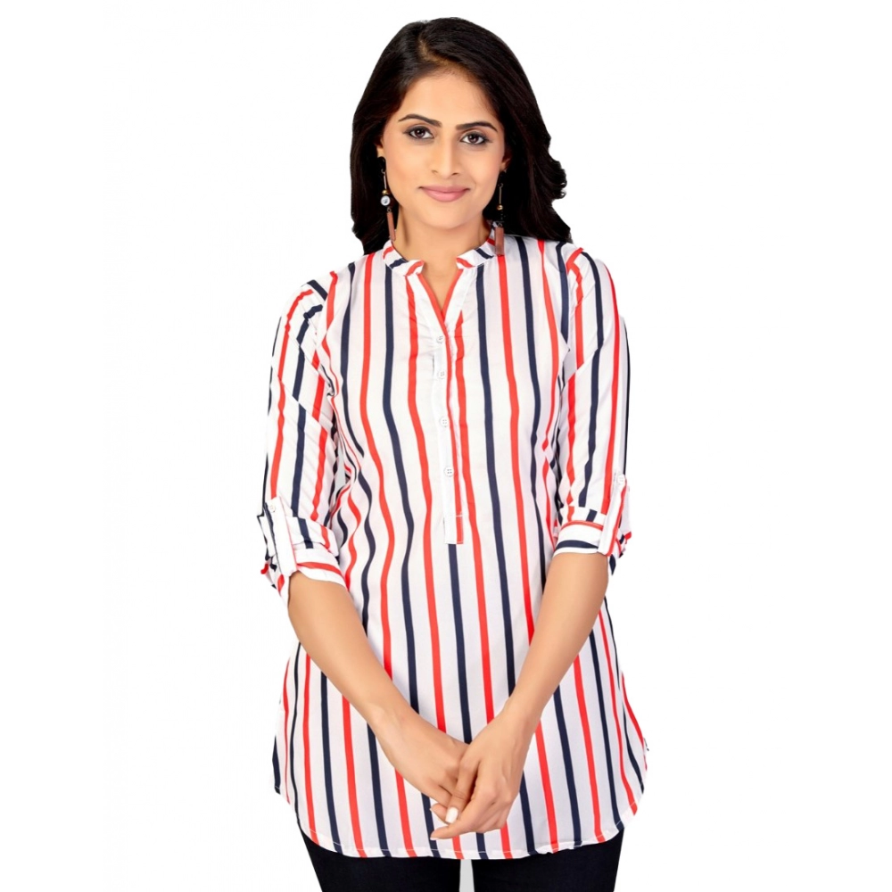 Women’s Poly Crepe Mandarin Collar 3/4 Sleeves Short Top (White)