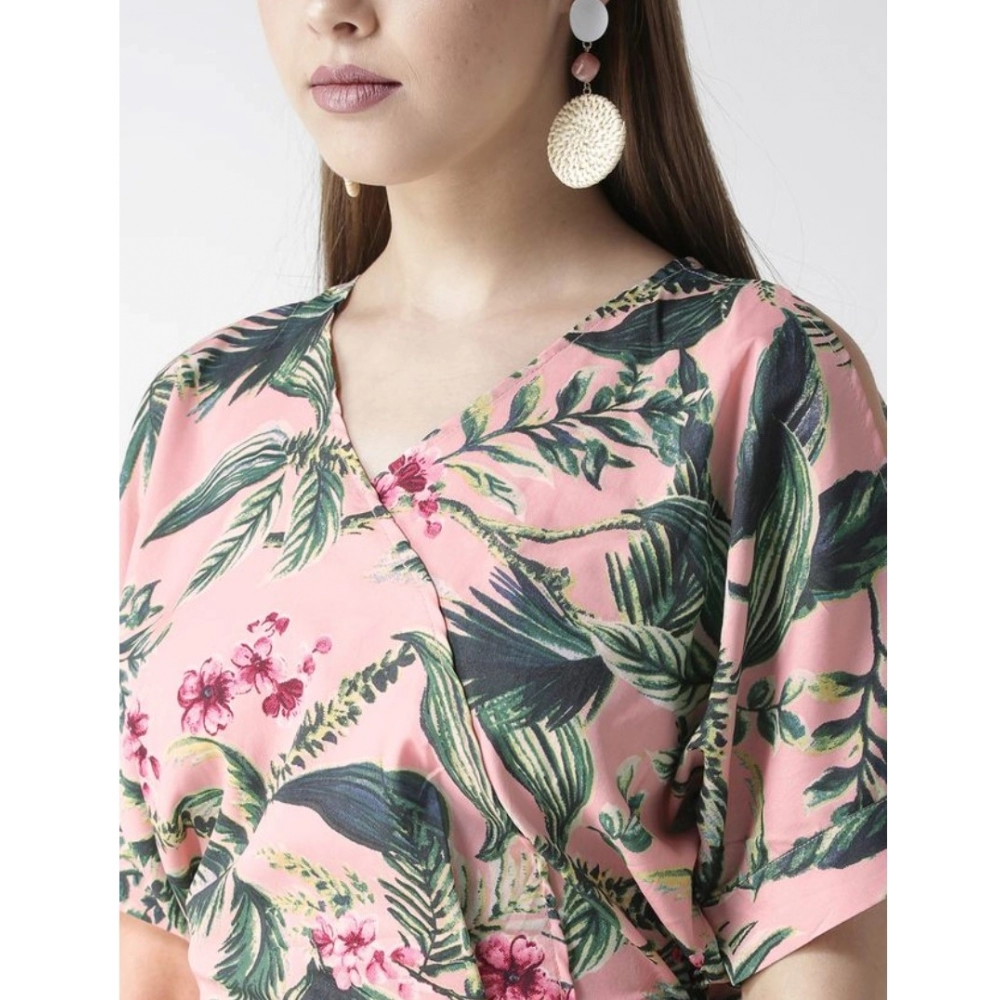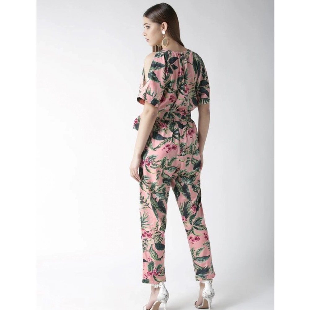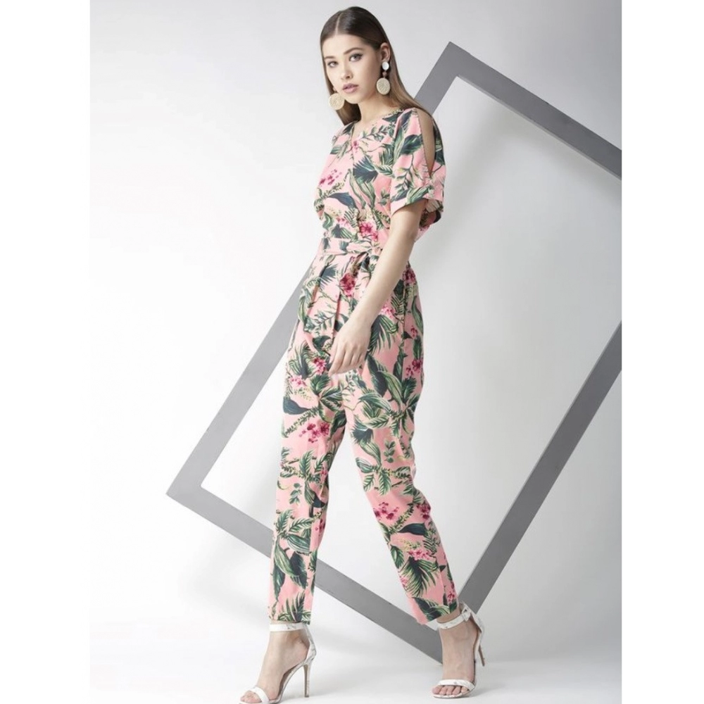 Women’s Polyester Floral Half Sleeve Jumpsuit (Pink)