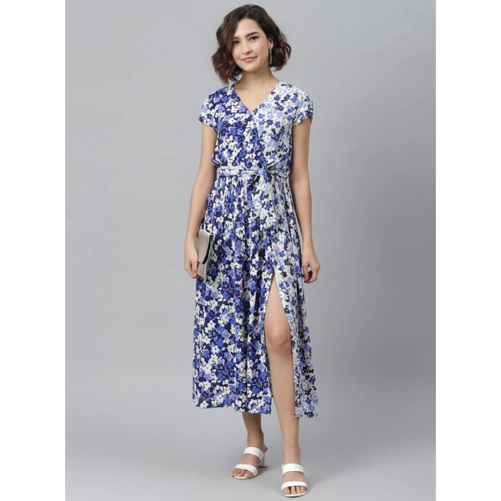 Women’s Polyester Floral V-Neck Short Sleeve Dress
