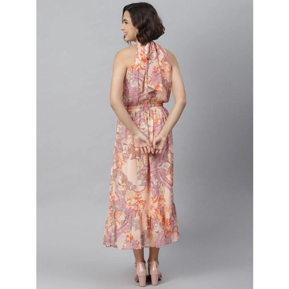 Women’s Polyester Maxi Halter Neck Sleeveless Dress