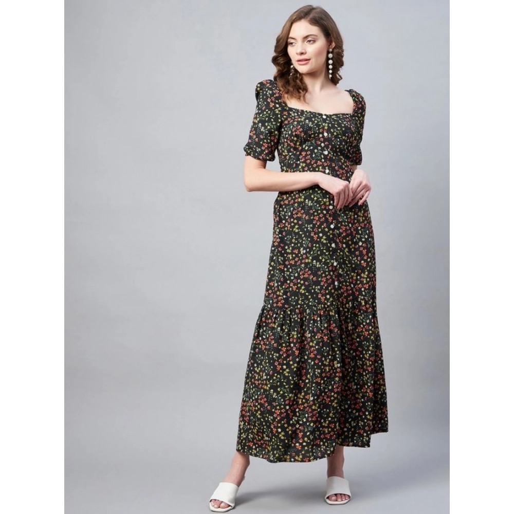 Women’s Polyester Moss Floral Square Neck Half Sleeve Dress