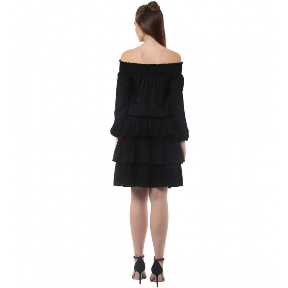 Women’s Polyester Moss Solid Off-Shoulder Long Sleeves Dress