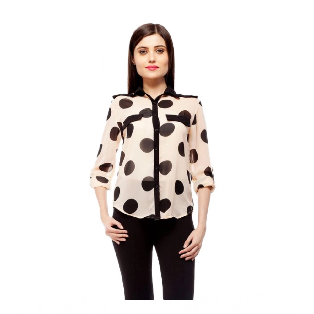 Women’s Polyester Polka Roll Up Sleeve Standard Length Shirt