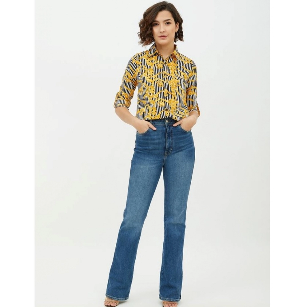 Women’s Polyester Printed Roll Up Sleeve Standard Length Shirt