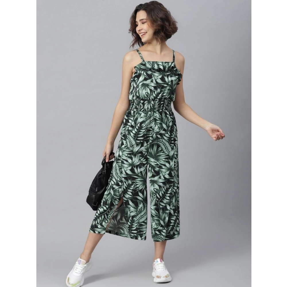 Women’s Polyester Printed Shoulder Straps Jumpsuit (Black – Green)