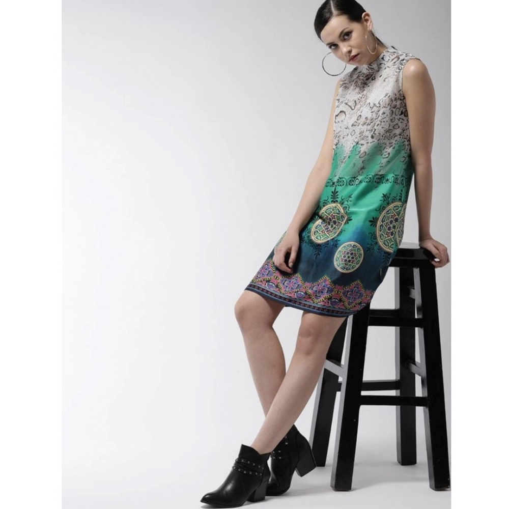 Women’s Polyester Printed Sleeveless Above Knee Dress (Multicolor)