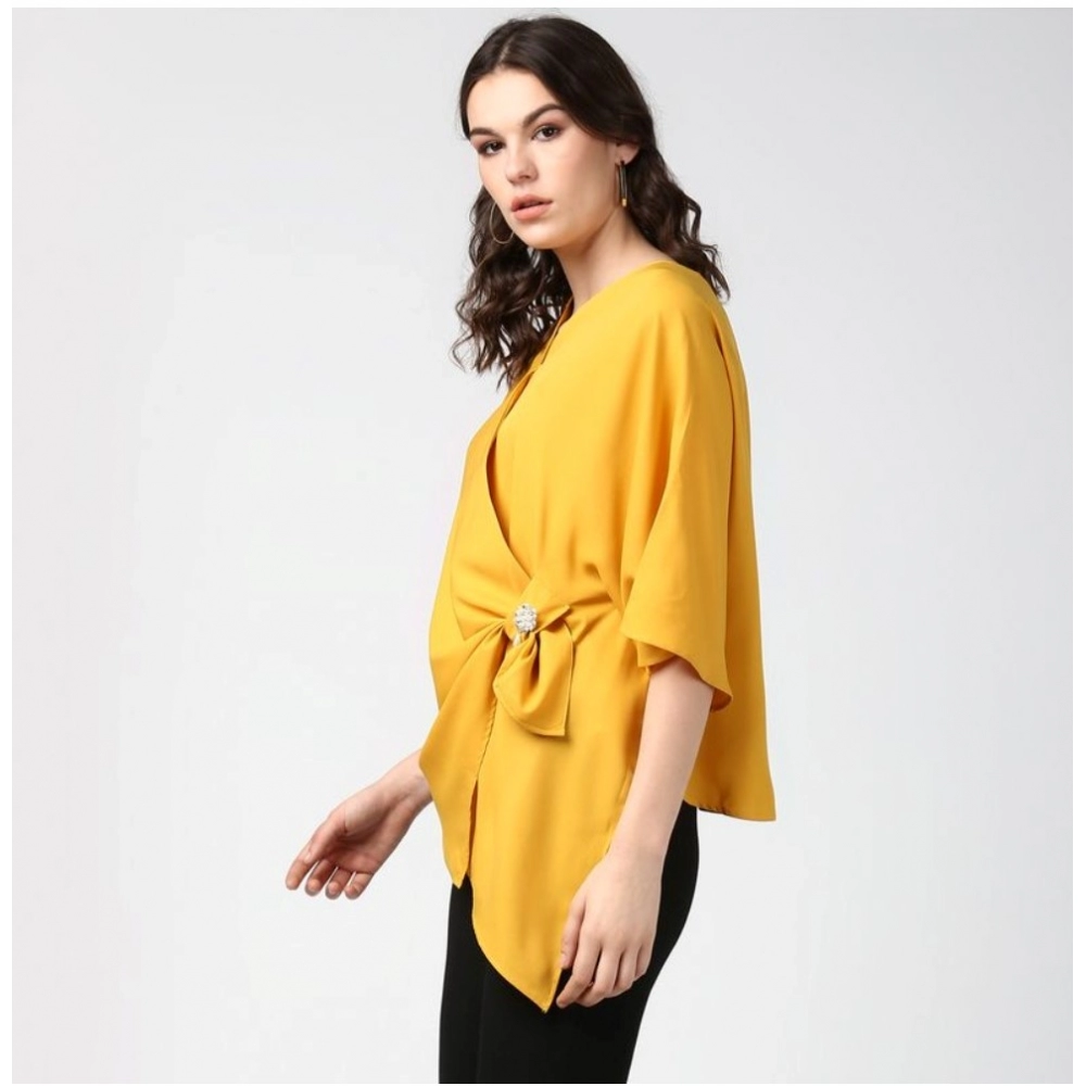 Women’s Polyester Solid Cape Sleeve Top (Yellow)