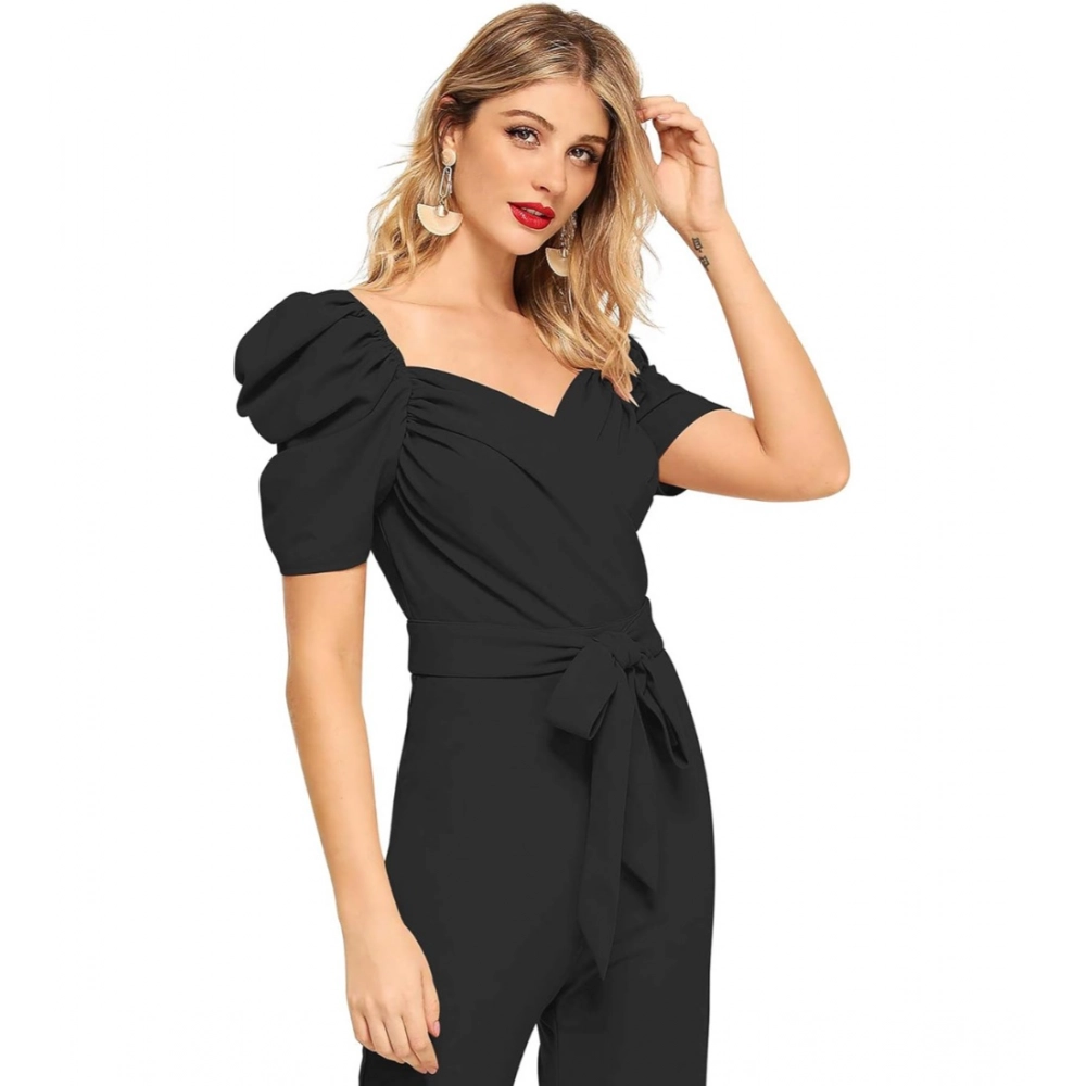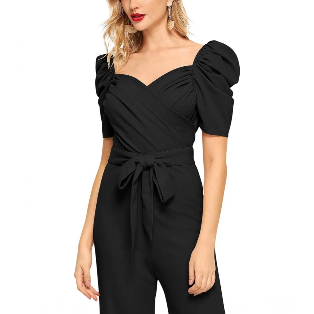 Women’s Polyester Solid Sweet Heart Short Sleeve Jumpsuit