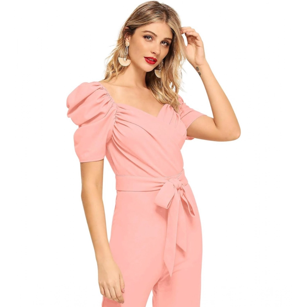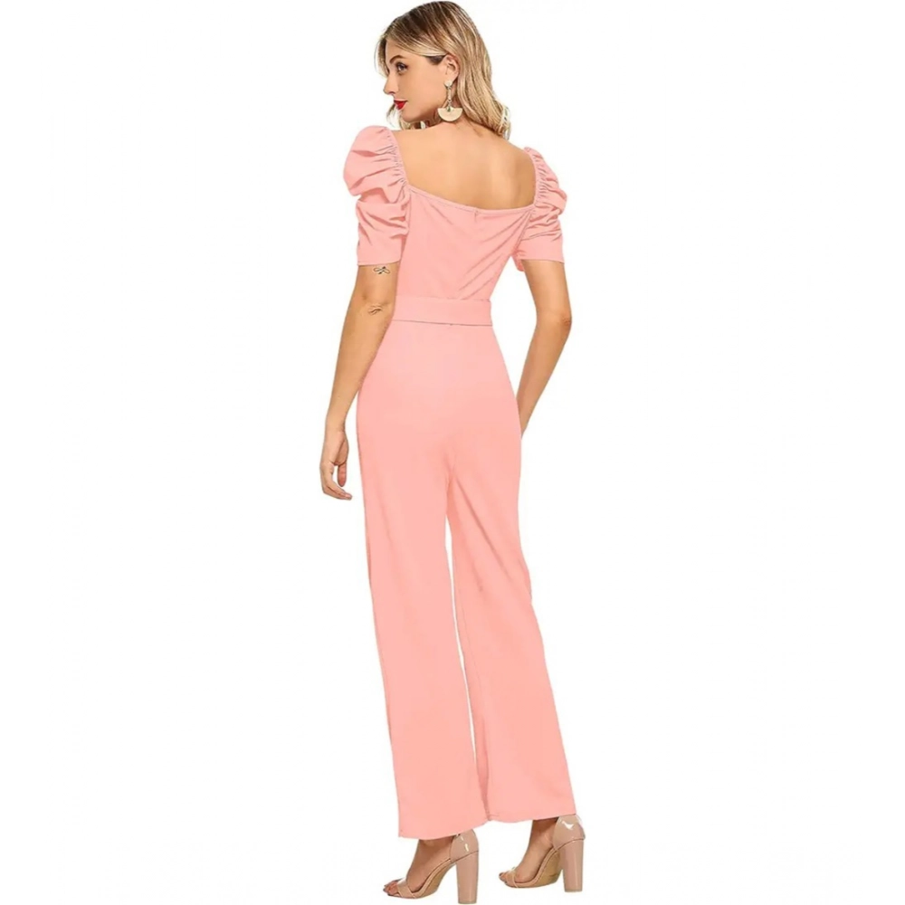 Women’s Polyester Solid Sweet Heart Short Sleeve Jumpsuit