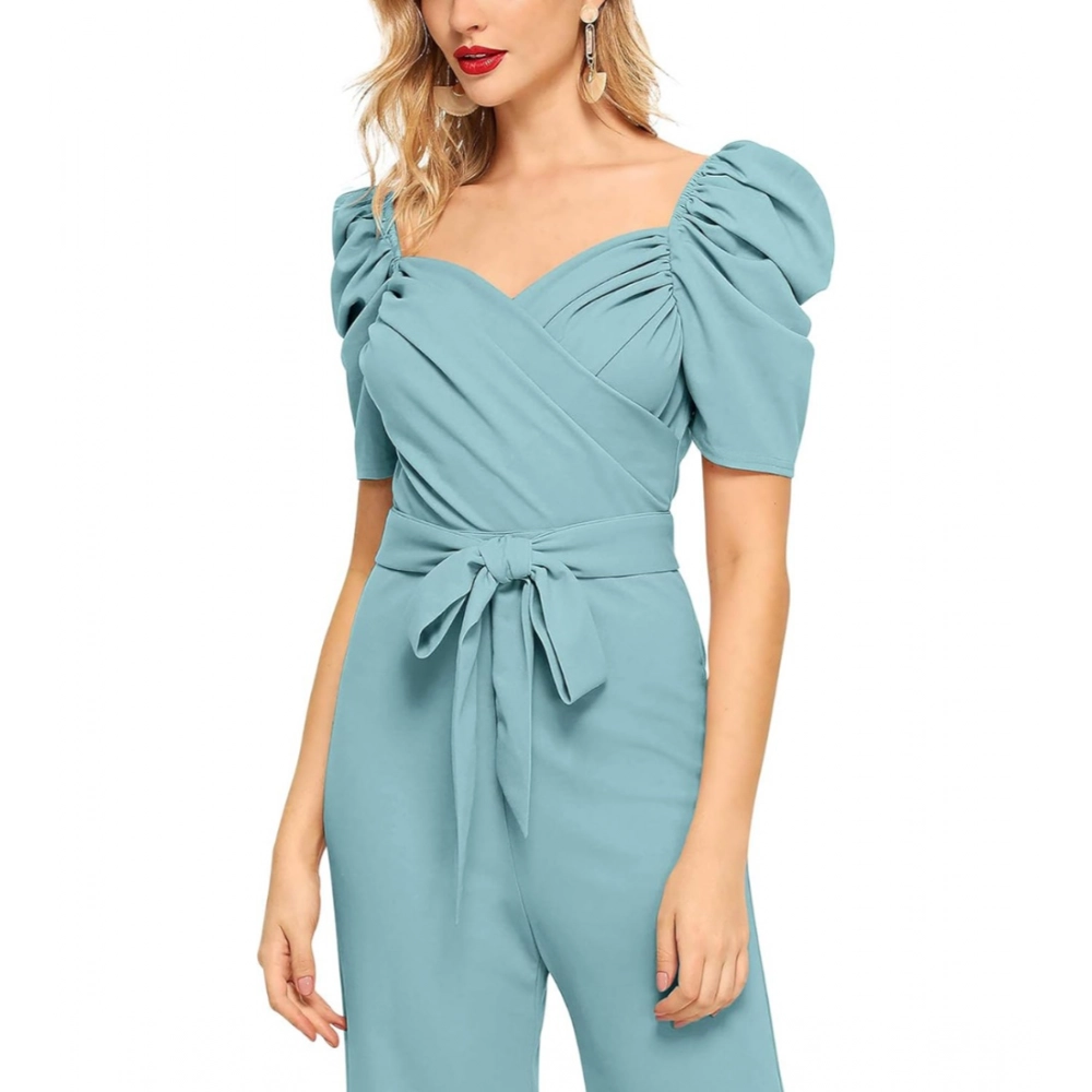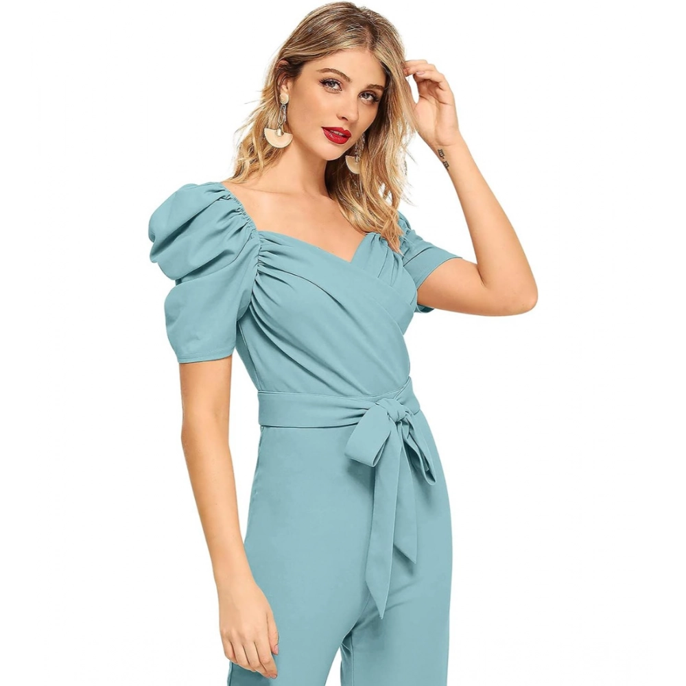 Women’s Polyester Solid Sweet Heart Short Sleeve Jumpsuit