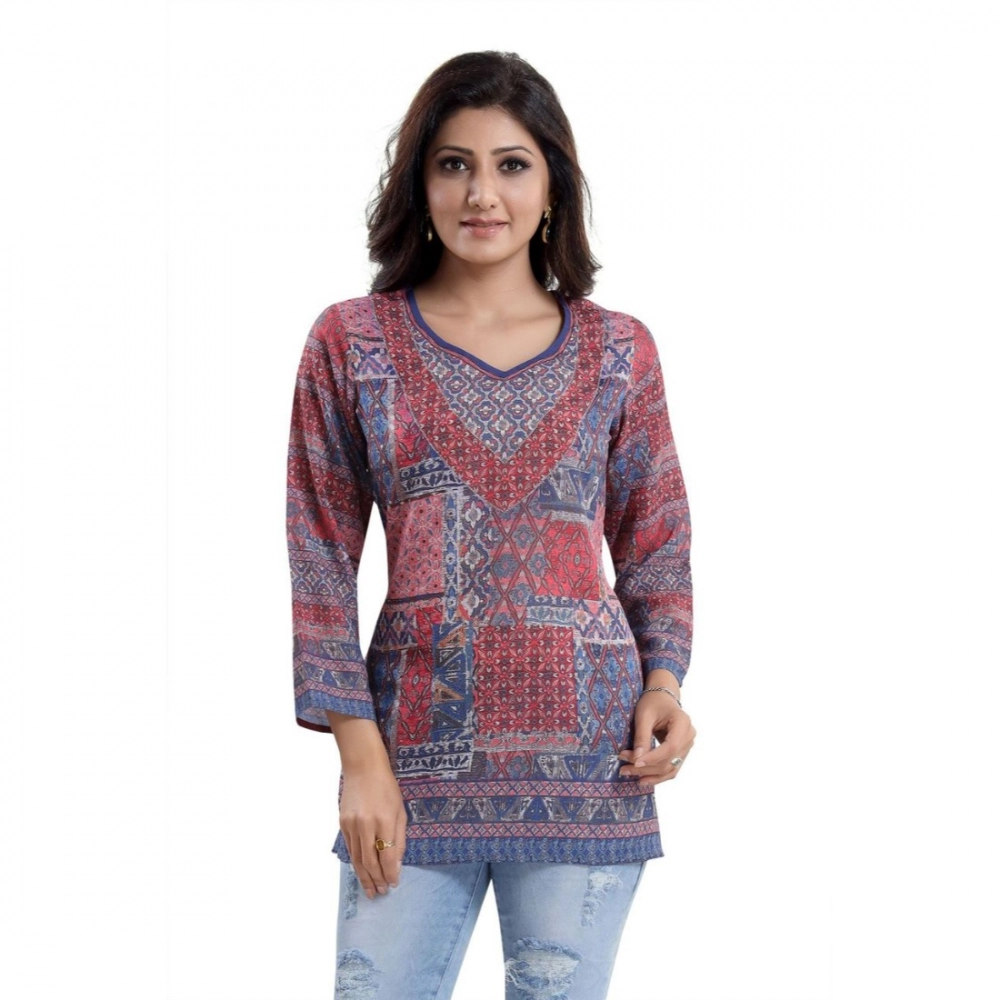 Women’s Quarter Sleeve Faux Crepe Printed Short Kurti Tunic Top