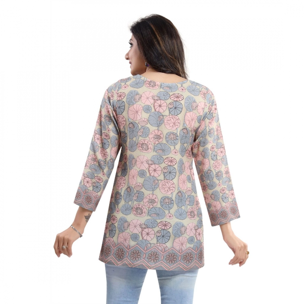 Women’s Quarter Sleeve Faux Crepe Printed Short Kurti Tunic Top (Color:Pastel)