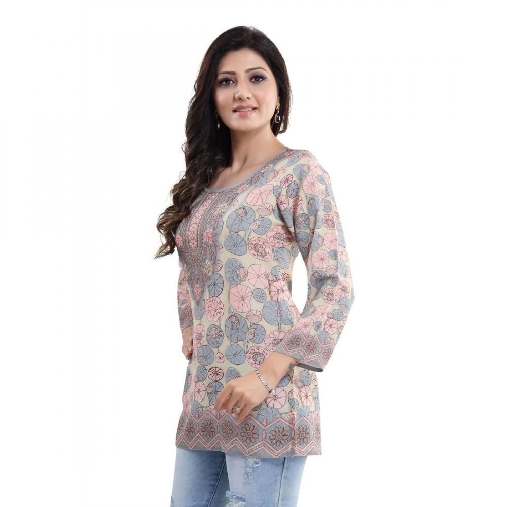 Women’s Quarter Sleeve Faux Crepe Printed Short Kurti Tunic Top