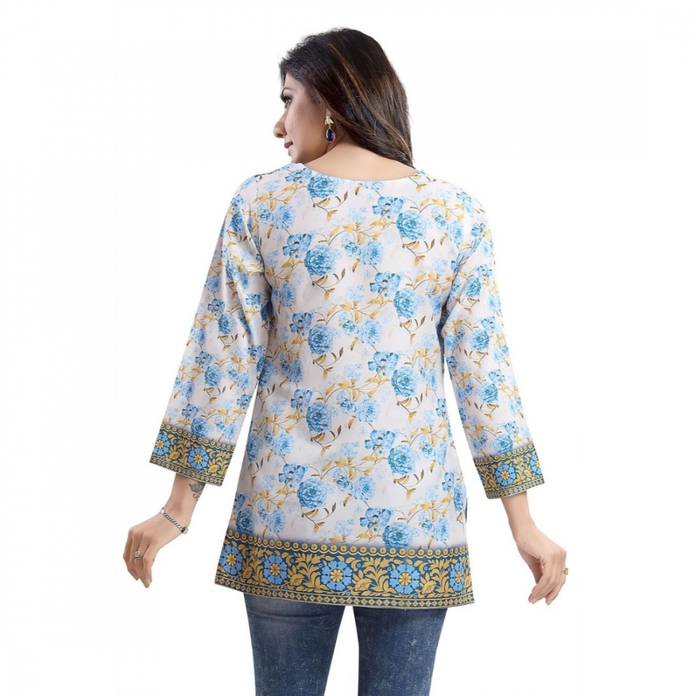 Women’s Quarter Sleeve Faux Crepe Printed Short Kurti Tunic Top