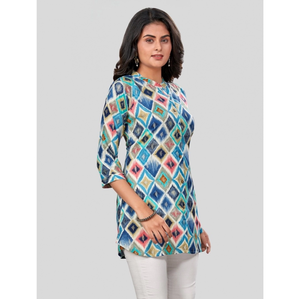 Women’s Rayon Collared Neck 3/4 Sleeves Short Top (Multicolor)