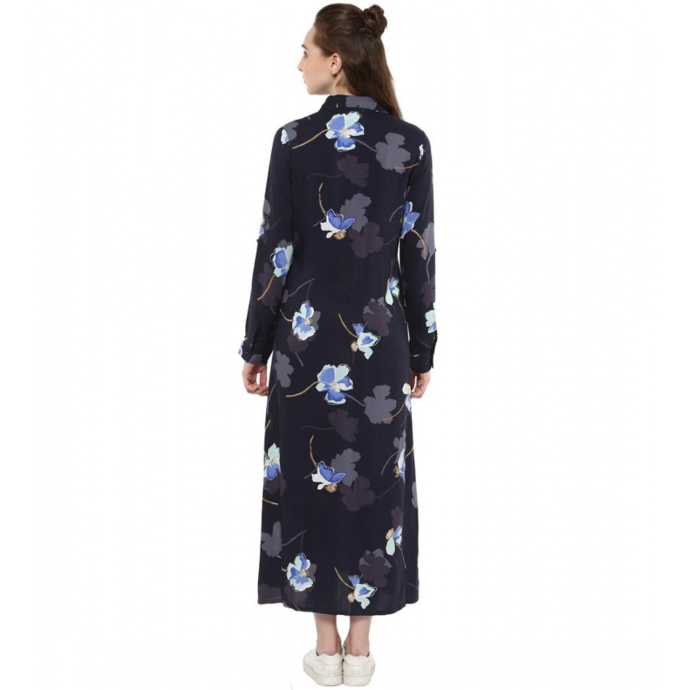 Women’s Rayon Floral Collar Neck Long Sleeves Dress