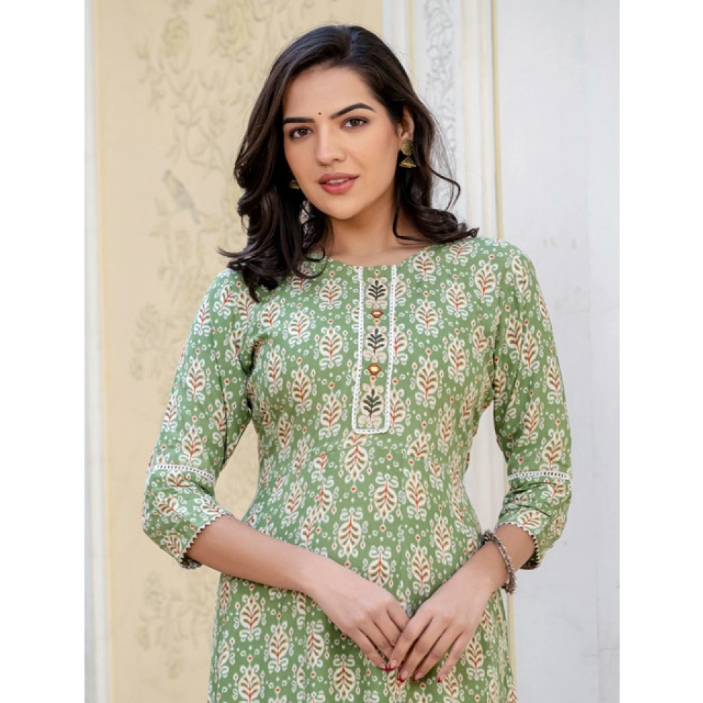 Women’s Rayon Print With Embroidery Work A-Line Kurti